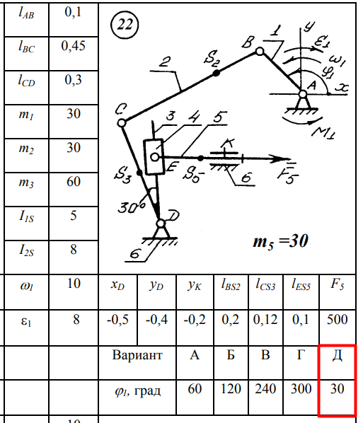 ДЗ 1: Кинематический анализ рычажных механизмов вариант 22