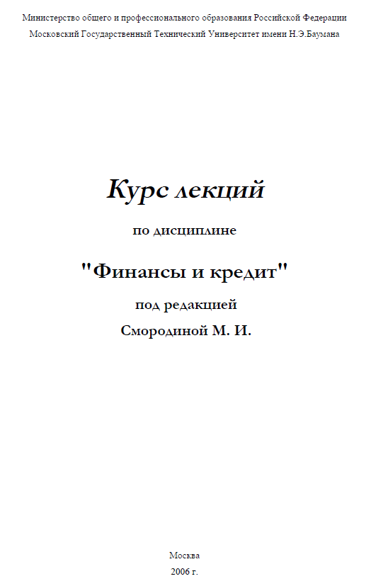 Для студентов МГТУ им. Н.Э.Баумана по предмету ЭкономикаФинансы и кредитФинансы и кредит