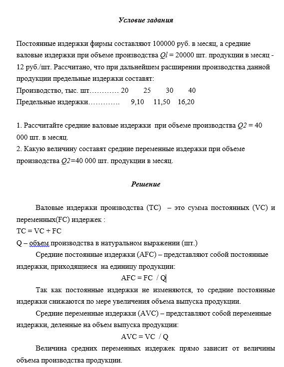 2. Какую величину составят средние переменные издержки при объеме производства Q2=40 000 шт. продукции в месяц.![]()