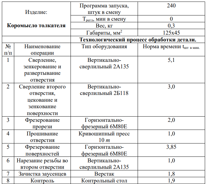 Исходные данные: I. Технологический процесс обработки с нормами времени по операциям приведён в таблице: