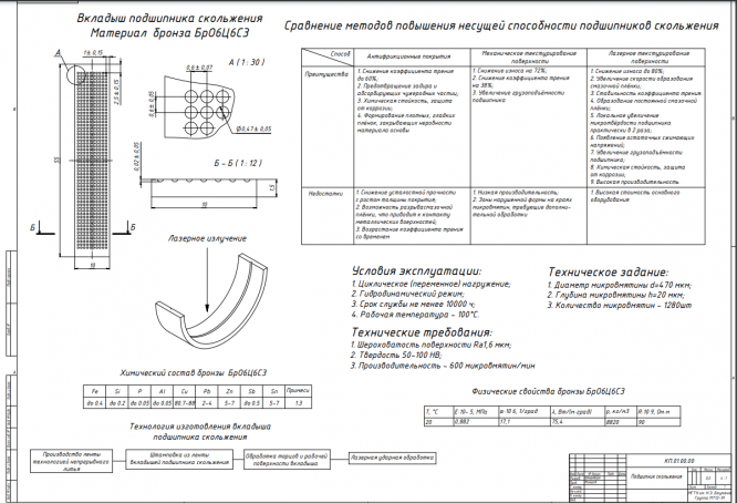 Расчетно-пояснительная записка к курсовому проекту по теме "Создание фрикционных покрытий методом лазерной ударной обработки" на примере внутренней поверхности вкладыша подшипника скольжения
