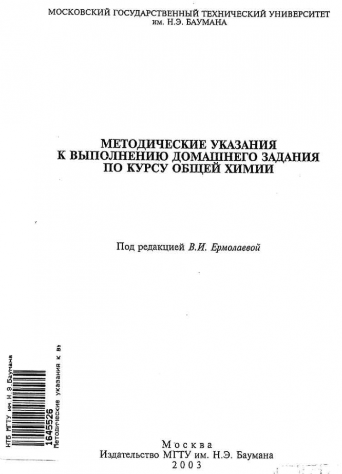 Для студентов МГТУ им. Н.Э.Баумана по предмету ХимияВ.И. Ермолаева - Методические указания к выполнению ДЗВ.И. Ермолаева - Методические указания к выполнению ДЗ