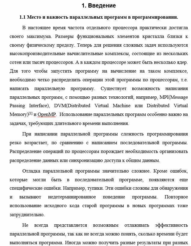 В настоящее время частота отдельного процессора практически достигла своего максимума. Размеры функциональных элементов кристалла близки к своему физическому пределу. Теперь для решения сложных задач используются высокопроизводительные вычислительные комплексы, состоящие из нескольких сотен или тысяч процессоров. А в каждом процессоре может быть несколько ядер. Для того чтобы запустить программу на вычисление на таком комплексе, необходимо четко распределить операции этой программы по процессорам, т.е. написать параллельную программу. Существует возможность написания параллельных программ, с помощью разных технологий, например, MPI(Message Passing Interface), DVM(Distributed Virtual Machine или Distributed Virtual Memory)[1] и OpenMP. Использование параллельных программ особенно важно на задачах, требующих длительного времени выполнения.
