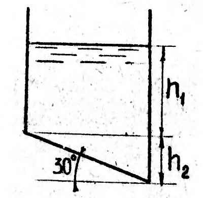 Определить силу гидростатического давления воды на левую боковую стенку и наклонное дно резервуара квадратного сечения. Найти координаты точек сил Давления. Построить эпюры гидростатического давления. Дано: h1 = 2,2 м; h2 = 1,0 м.