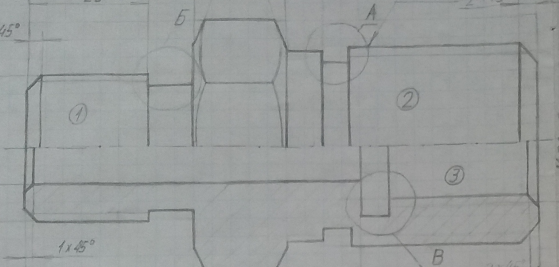 Чертеж сделан с ошибками: неправильно определена резьба номер 3, неправильно изображена внутренняя часть штуцера на разрезе, криво изображена резьба на чертеже. Своих денег эта халтура явно не стоит.