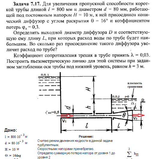 Для студентов по предмету Механика жидкости и газа (МЖГ или Гидравлика)Задача 7-17Задача 7-17