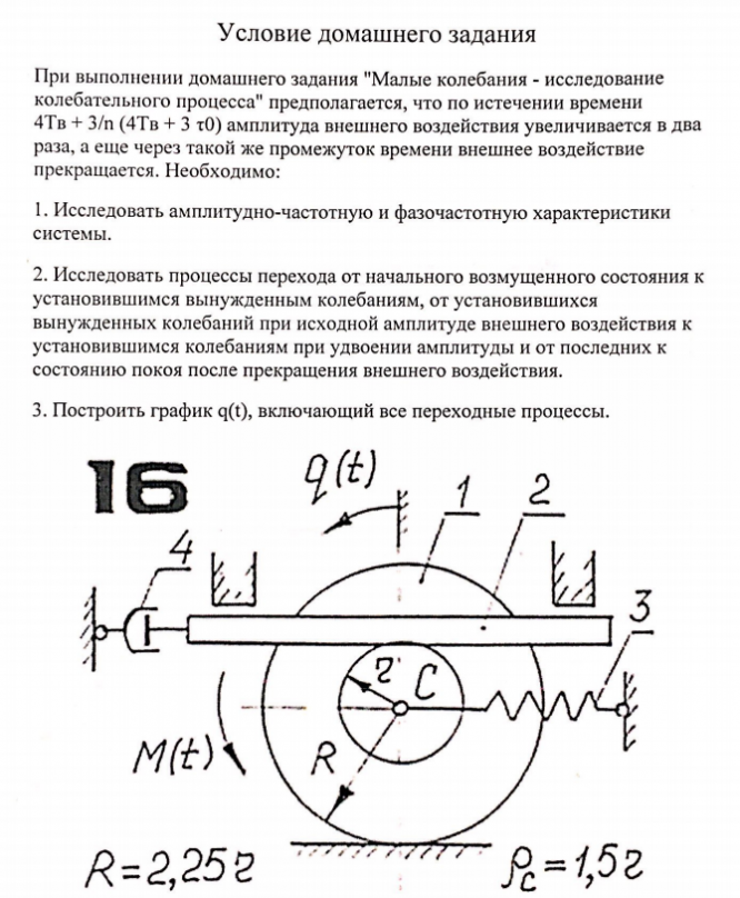 ДЗ 2: Колебания линейной системы с одной степенью свободы вариант 16