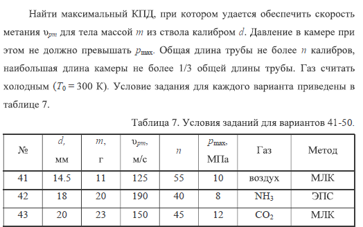Главная » Учебные материалы » Газовая динамика » Курсовые работы » МГТУ им. Н.Э.Баумана » 5 семестр » Вариант 43 » Определение рациональных параметров метательных устройств на сжатом газе