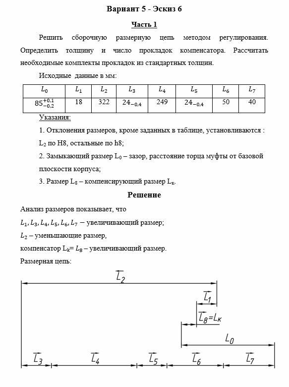 ДЗ 2: Сборочная размерная цепь + Подетальная размерная цепь вариант 5