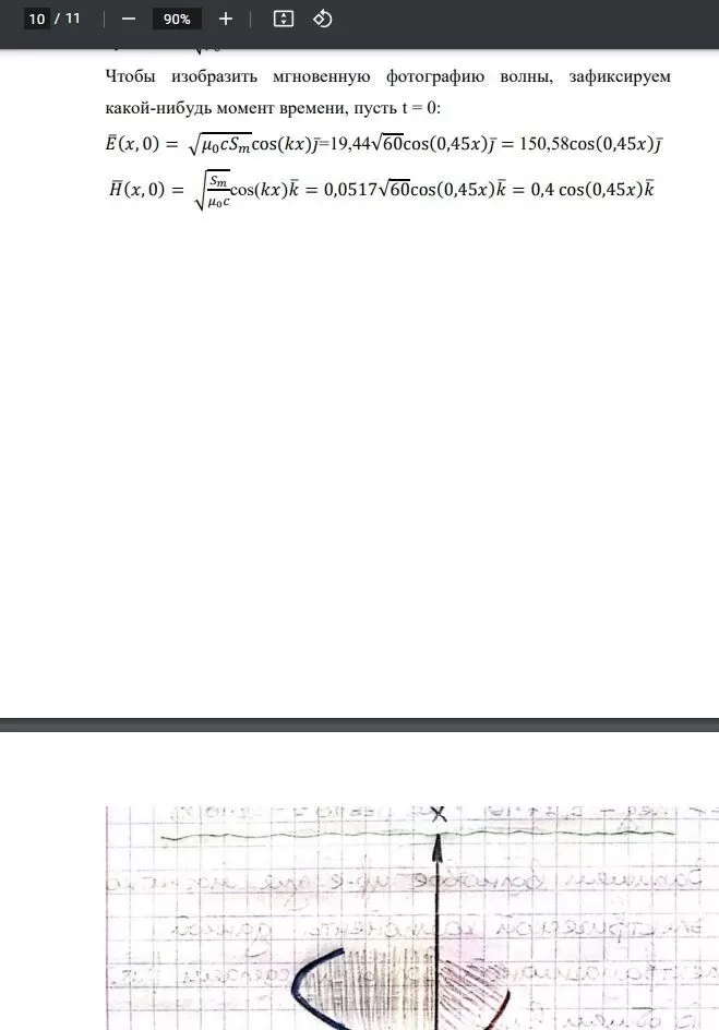 - Записать волновое уравнение для магнитной и электрической компонент рассматриваемой электромагнитной волны и изобразить схематично мгновенную фотографию этой волны.