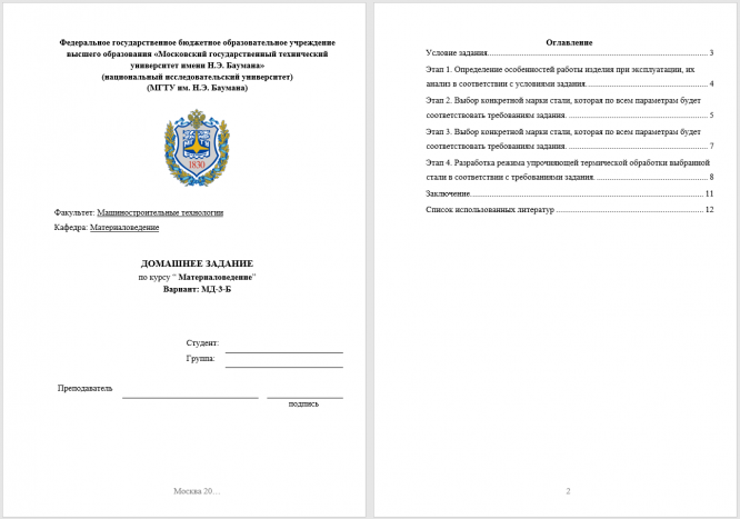 ДЗ МД: Выбор материала и технологии термической обработки вариант 3