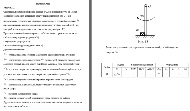 ДЗ 1: Динамика материальной точки + Динамика вращательного движения вариант 16