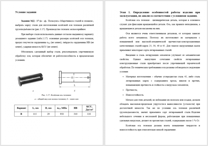 ДЗ МД: Выбор материала и технологии термической обработки вариант 17