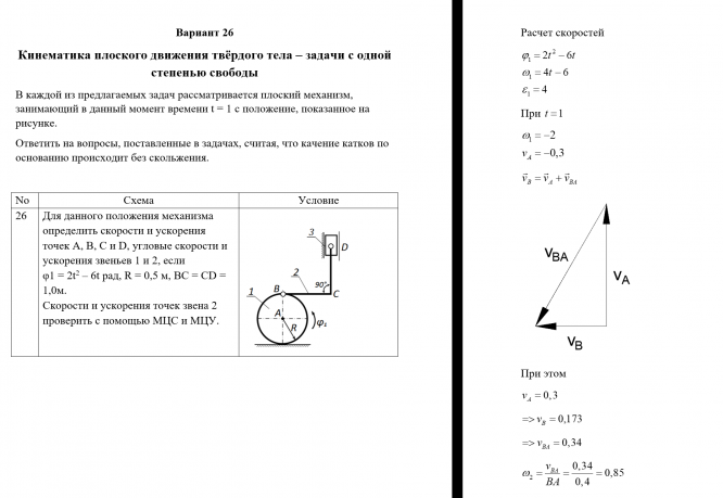 ДЗ 2: Кинематика плоского движения твердого тела вариант 26