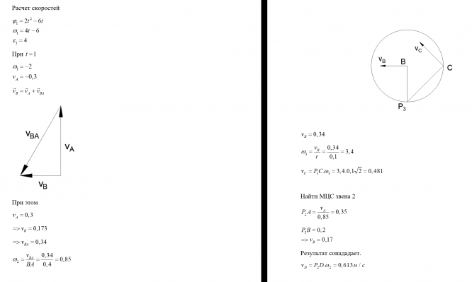 Скорости и ускорения точек звена 2проверить с помощью МЦС и МЦУ. | | |