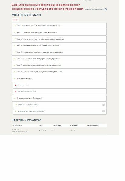 Для студентов Университет «Синергия» в г. Омск по предмету Цивилизационные факторы формирования современного государственного управленияПромежуточные тесты 110 ответовПромежуточные тесты 110 ответов
