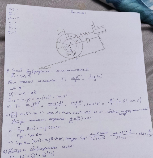 Типовой расчет по теоретической механике, "Колебания линейной системы с одной степенью свободы", + графики, зачтено