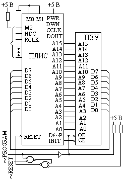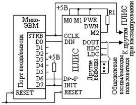 Если после конфигурирования предполагается производить обратное считывание, то последовательно с выводами М0 и М1 следует также включить резисторы сопротивлением 5 кОм. Из одного источника битового потока можно конфигурировать несколько ПЛИС, но для получения различной их конфигурации применяется каскадное включение.