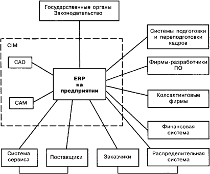 Система ERP объединяется с объектами и системами, находящимися вне предприятия (рис. 26).