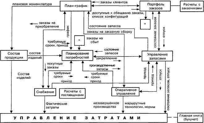 Таким образом, комплексная автоматизация управления способствует преодолению барьеров между различными службами управления. Одним из проявлений этого процесса является использование в разных службах одних и тех же функций, требуемых для подготовки различных управленческих решений. Например, проверка уровня запасов на складе выполняется как при поступлении внешнего заказа, так и при формировании производственного заказа или заказа на приобретение.