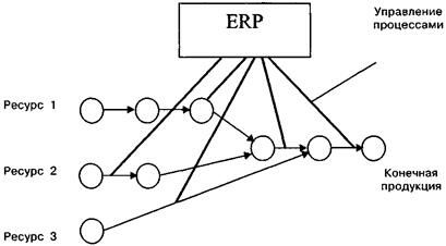 Интеграция управления между всеми процессами преобразования ресурсов в продукцию (рис 33) заключается в том, что все процессы управляемы и обеспечена непрерывность управления ими.