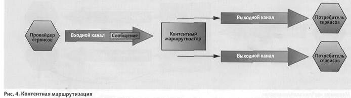 Маршрутизации сообщений о событиях отличается от двух описанных, механизмов тем, что в этом случае выполняется не простая механическая пересылка сообщений: вдобавок обеспечивается анализ контекста сообщения, а маршрутизация осуществляется в соответствии с имеющимися интеграционными сценариями.