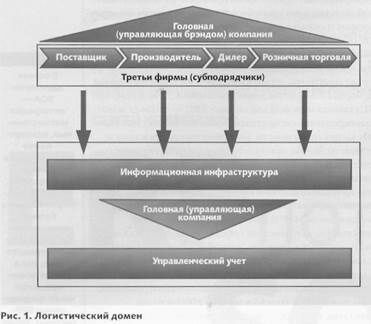 Для поддержания деятельности и сложных финансовых и производственных холдингов, многоуровневых дистрибьюторских систем, транснациональных корпораций и объединений были разработаны специальные методологии управления товарными потоками. Подходы к таким системам управления были зафиксированы в концепции логистических цепочек (supply chain). Сегодня она является доминирующей концепцией управления бизнесом реального сектора. Типичной стала весьма сложная конфигурация логистической цепочки (рис, 1), Некую совокупность возможных участников логистических цепочек конкретного предприятия можно назвать «логистическим доменом».