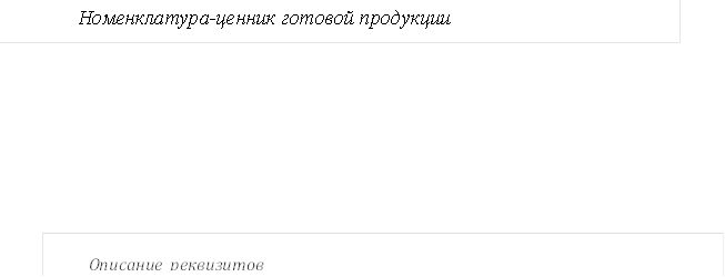их форм и реквизитов, значения которых должны вводиться с документов в ПК. Описание реквизитов удобно представлять в табличном виде. Для каждого реквизита может быть определено сокращенное обозначение, которое будет использоваться при формализации. Например, для документа «Номенклатура-ценник готовой продукции» описание реквизитов представлено в следующем виде: