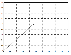 Попробуем теперь оптимизировать нечеткий регулятор для единичного ступенчатого воздействия. Желаемый переходный процесс имеет приблизительно следующий вид: