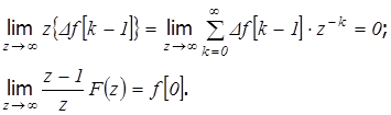 Приведенные зависимости являются аналогами для нахождения конечного и начального значений непрерывной функции