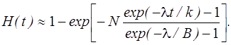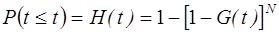 Если t – время безотказной работы изоляции, то t=min(ti), где i=l, 2, 3,... ,N. Так как за отказ было принято образование сквозного повреждения, то в соответствии с формулой (8.35) функция распределения случайной величины t имеет вид