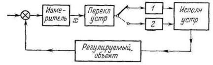 Большие дополнительные возможности улучшения процессов регулирования дает нелинейное управление работой объекта путем изменения структуры регулятора в зависимости от размеров и знаков входных величин, поступающих в регулятор от измерительного устройства.