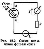 На рис. 12.2 приведена схема включения вакуумного фотоэлемента. Анод А и катод К фотоэлемента находятся в стек-