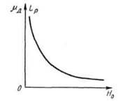 видно, что магнитная проницаемость ферромагнитного материала, из которого изготовлен сердечник, непостоянна. Сначала кривая идет круто вверх, малым изменениям