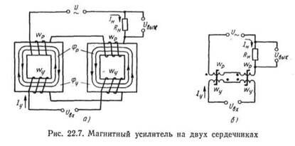 , т. е. усилитель обладает некоторой инерционностью. Инерционность магнитного усилителя определяется переходным процессом в цепи управления, вихревыми токами и потерями на гистерезис в сердечниках, переходным процессом в цепи переменного тока.
