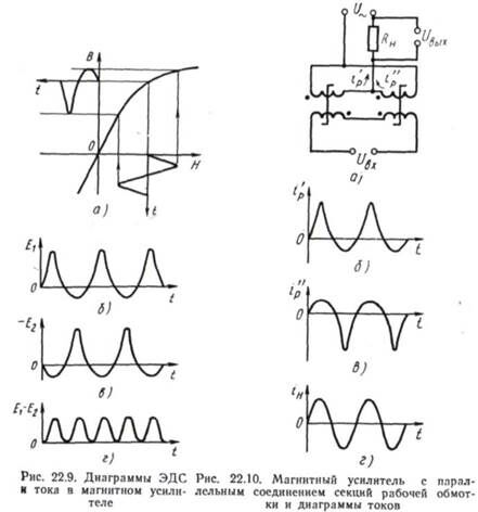 , растет переменная составляющая напряженности поля и, следовательно, переменный ток в обмотке. На этом явлении и основано действие магнитных усилителей.