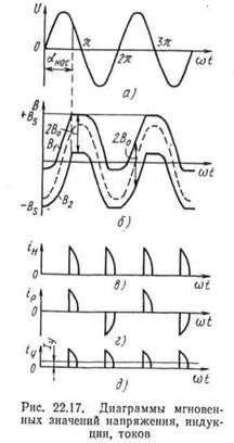 На рис. 22.3 изображена средняя кривая намагничивания сердечника