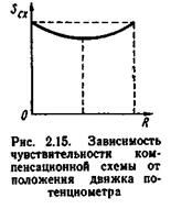 то чувствительность зависит от положения движка х. Чувствительность непостоянна в разных точках шкалы. На рис. 2.15 показана зависимость чувствительности от положения движка компенсирующего резистора. В начальном положении движка
