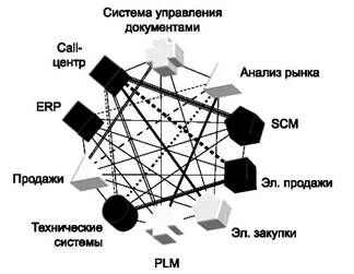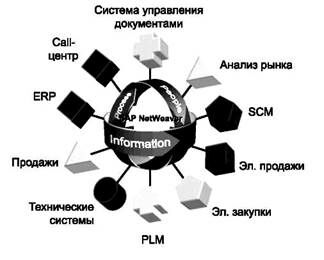 На рисунке показана схема взаимодействия автоматизированных систем современного предприятия обычным способом (рис. 3.4, а) и путем использования Базовой технологии компании SAP (рис. 3.4, б). Из рисунка видно, что в последнем случае создаются все условия для обеспечения ЕИП. Таким образом, предлагаемая схема отвечает всем требованиям CALS.