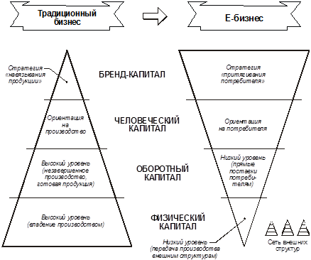 Руководители многих компаний осознали настоятельную необходимость перехода от традиционной модели бизнеса к декапитализированной модели электронного бизнеса (рисунок 6.1) [4].