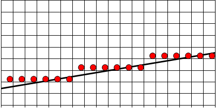 По этой же причине даже отображение отрезка прямой линия, строго говоря, не является прямой, как это показано на приведенном ниже рисунке (рис.2-1). Линия представляется набором горизонтальных (или вертикальных) цепочек пикселов, которые с учетом шага дискретизации наилучшим образом отражают характер генерируемой прямой линии.