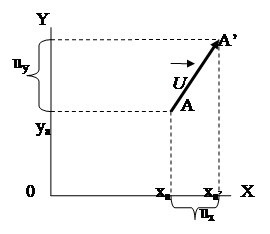 Перенос точки А на заданный вектор U иллюстрируется ниже приведенным рисунком (Рис. 5.1‑2). Решение задачи рассматриваемого преобразования сводится к определению на основании старых координат новых координат заданной точки после ее перенесения на заданный вектор