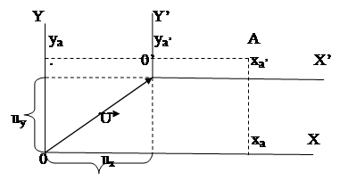 Координатные оси после перенесения системы обозначены как X’,Y’.