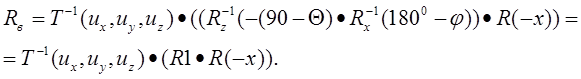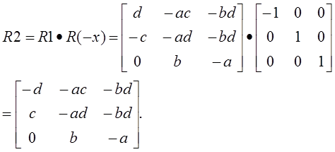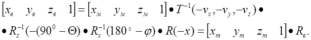 При нахождении матрицы видового преобразования Rв, учтем необходимость расширения матрицы R2 из размерности 3*3 до размерности 4*4: