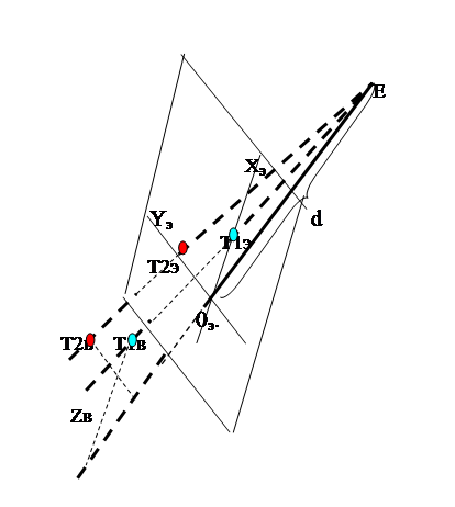 - Т2– точка в видовой системе координат, расположенная на координатной плоскости YвZв;