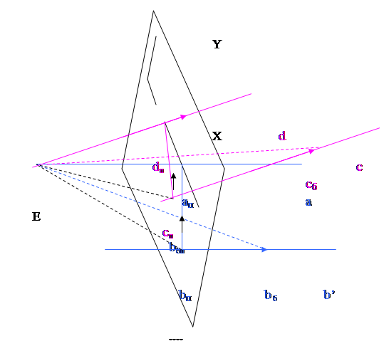 Рассуждая аналогично легко показать, что для всех линий, параллельных плоскости, проходящей через точку E и прямую dпап, точки схода будут находиться на линии, проходящей через точки dпап.