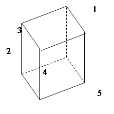 Пусть необходимо построить проекцию параллелепипеда, с вертикальными боковыми гранями, имеющий верхнюю грань, заданную опорными точками 1, 2,3, 4, и нижнюю, заданную узловыми точками 5, 6, 7, 8 (Рис. 6.2‑5).