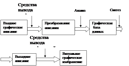 Преобразование графической информации предполагает в общем случае обработку входного описания для извлечения из него необходимых сведений, представление этой информации в форме, удобной для ее передачи, хранения и отображения. В качестве составляющих этого преобразования, можно выделить: