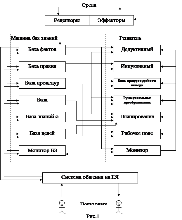 и вспомогательные блоки: систему общения на ЕЯ, рецепторы и эффекторы.