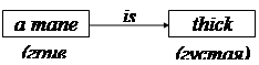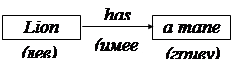 Свойства передаются через связки "IS" и "HAS" ("есть" и "имеет"), например, высказывание "лев имеет гриву" интерпретирует фрагмент сети, показанный на рис.1.4, а фраза "грива густая" (a mane is thick) передается фрагментом на рис. 1.5.